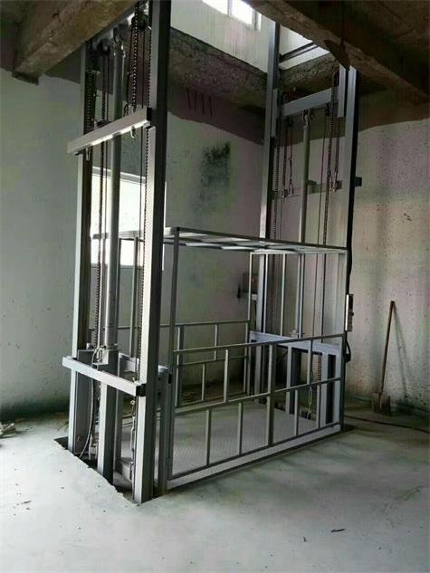 导轨式升降平台是一种垂直升降作业的简易升降货梯。此设备采用液压油缸顶升、链条及钢丝绳拉动工作台,起升到目标高度后,通过限位开关自动与楼层平层。此设备适用于工业厂房、餐厅、酒楼、立体车库和地下车库等场所二、三层或多楼层间的货物传输。最低高度在150-300mm,尤其适合不能开挖坑的工作场所。安装设备时无须上部吊点,特别适合顶层高度不能到达机房安装要求的场合等比较难解决的狭小空间。形式多样化。设备运行平稳,操作简单可靠,具有液压,电器多种保护,货物传输经济便捷。建筑物不同楼层货物升降,快速上下,可更便捷的将大型物件运达各个楼层。产品结构坚固,承载量大,升降平稳,安装维护简单方便,是经济实用的楼层间替代电梯的理想货物输送设备。